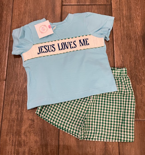Jesus Loves Me Smock Boy 2 piece set